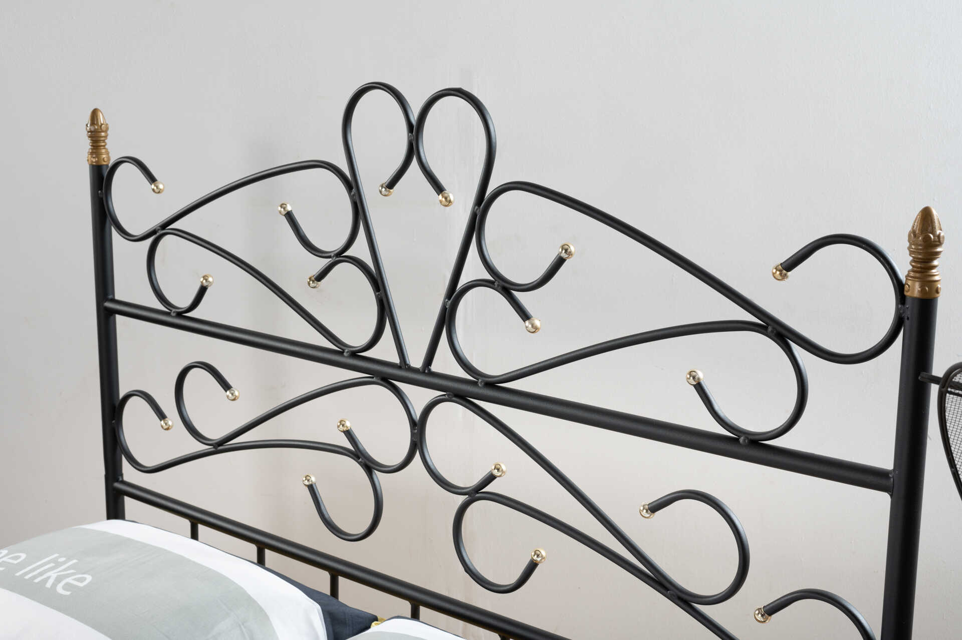 מיטה זוגית ממתכת דגם ברגר מרהיב ביופיו בשילוב פונפוני זהב. בעיצוב מודרני צעיר ושובה עין, במראה צעיר ורענן.
