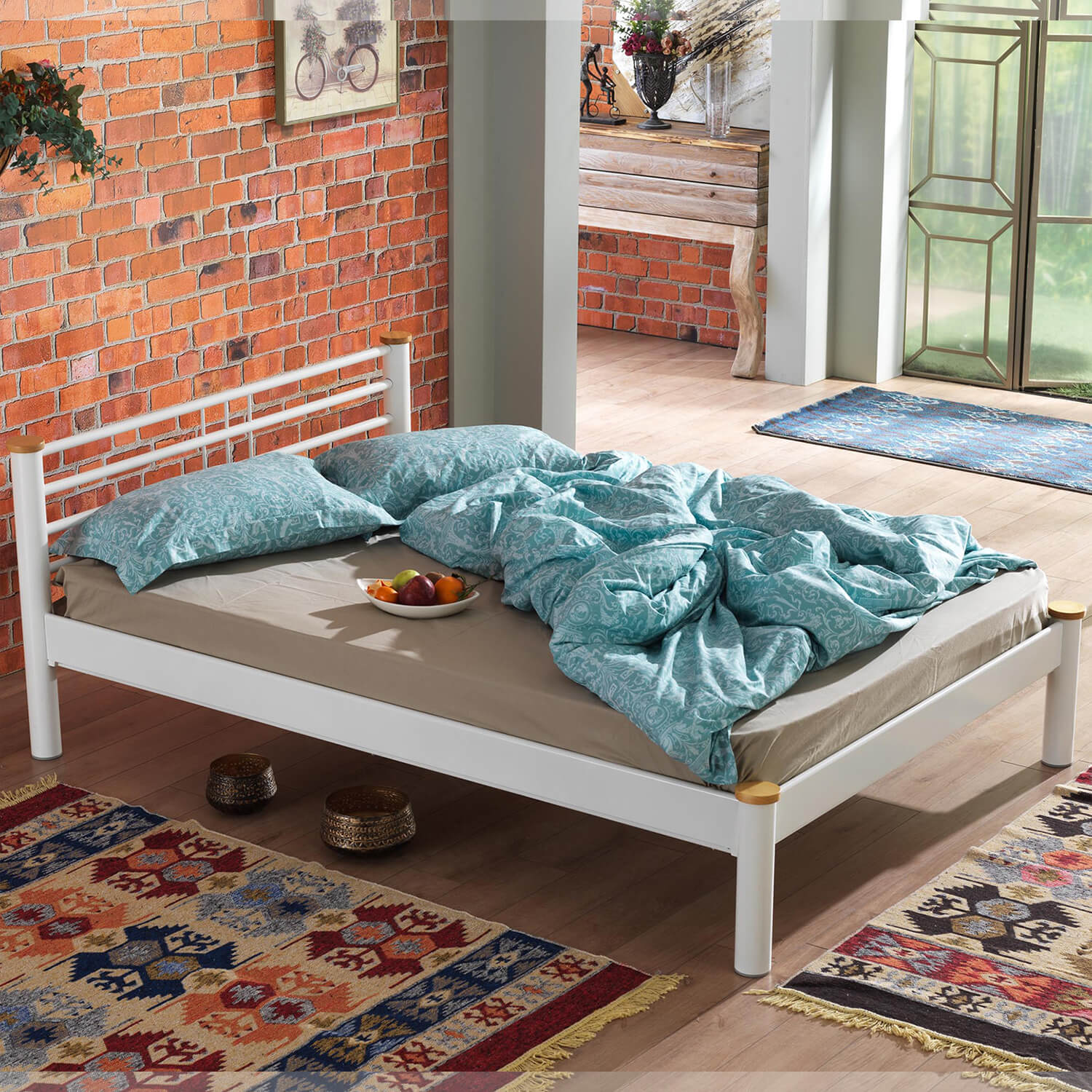 מיטה זוגית ממתכת דגם ברגר מרהיבה ביופיה בשילוב פונפוני זהב.