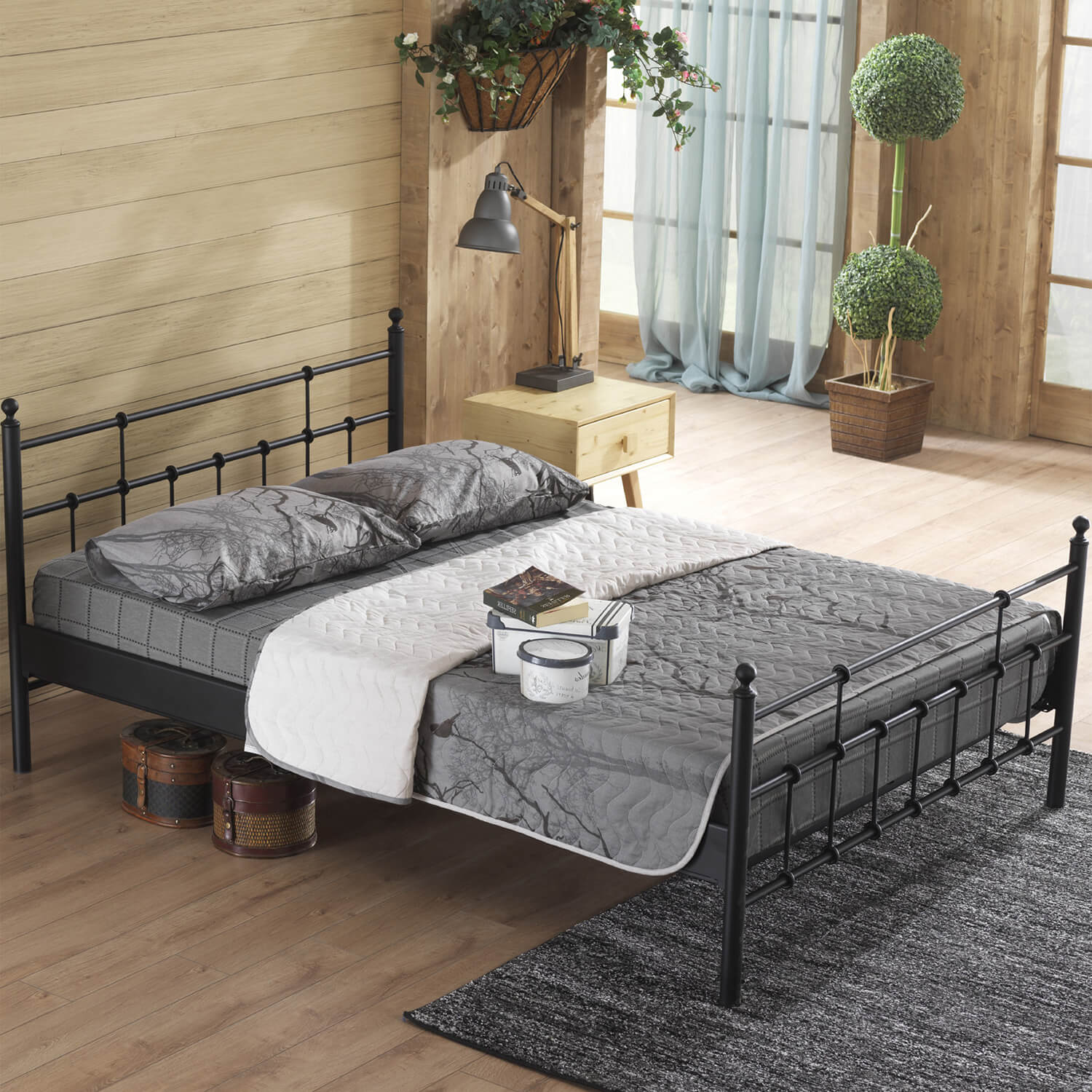 בסיס המיטה בנוי מלייסט מתכת מחוזק ועליו דיקט ליציבות המיטה.