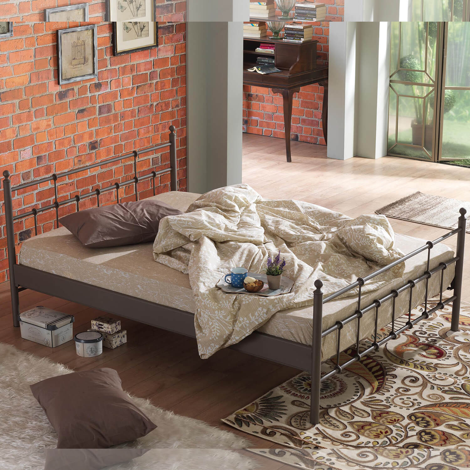 המיטה עשוייה ממתכת במרקם ייחודי, מסגרת המיטה מחוזקת על ידי מוטות מתכת מיוחדים המבטיחים יציבות מושלמת למיטה ומעניקים תמיכה למזרן.