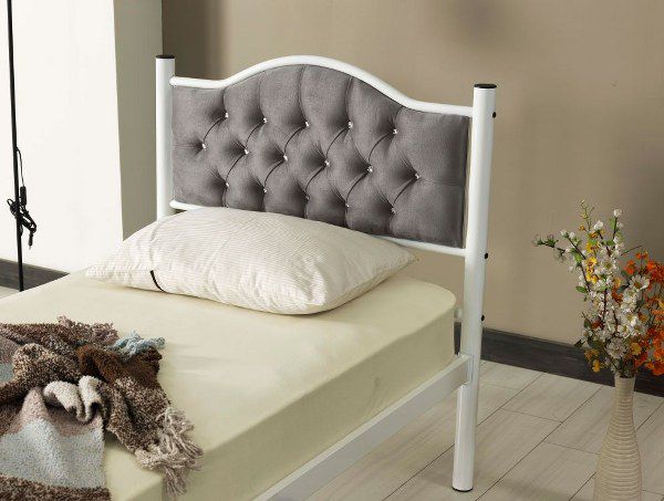 מיטת יחיד מעוצבת בשילוב מתכת וריפוד המוסיפה לחדר מראה צעיר ורענן.