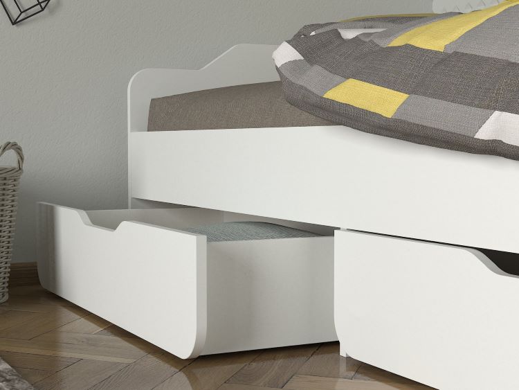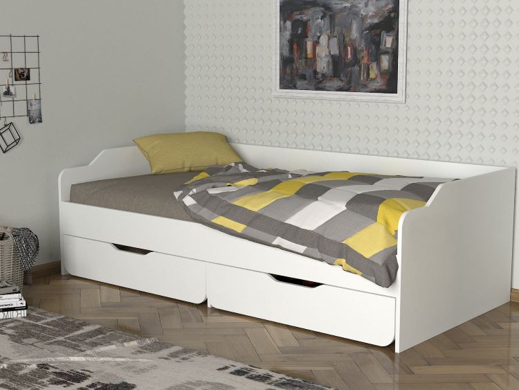 העניקו לחדר השינה מראה מודרני ונקי עם מיטת יחיד מעץ בצבע לבן, הכוללת שתי מגירות אחסון מרווחות לניצול מקסימלי של החלל!