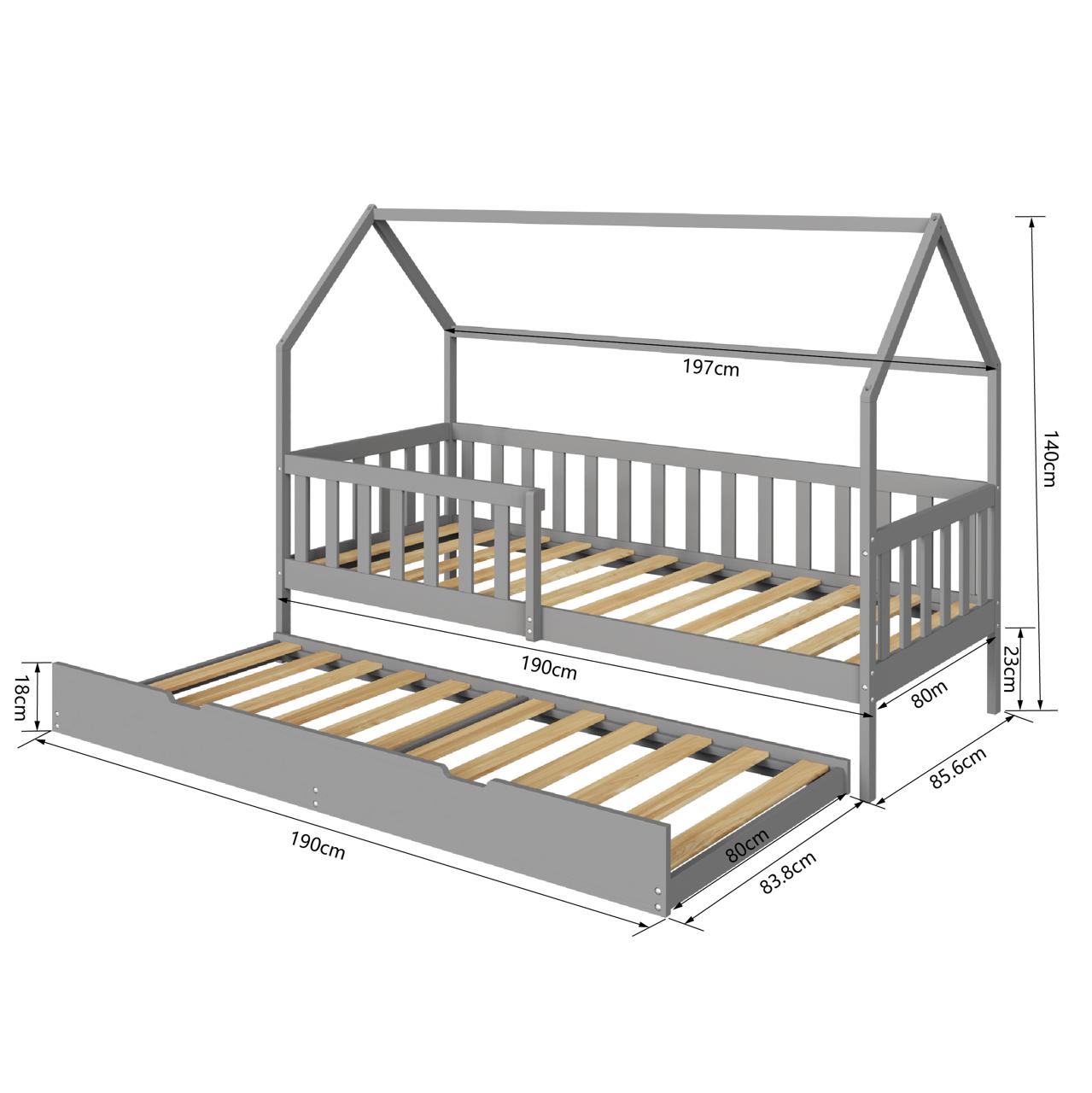 המיטה נמוכה ונגישה, עם מעקה בטיחות למניעת נפילות, ומיטת חבר נוספת לאירוח נעים ונוח.