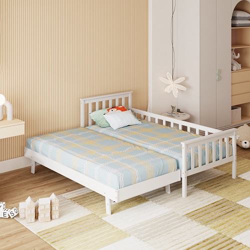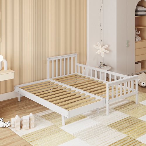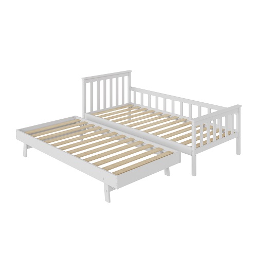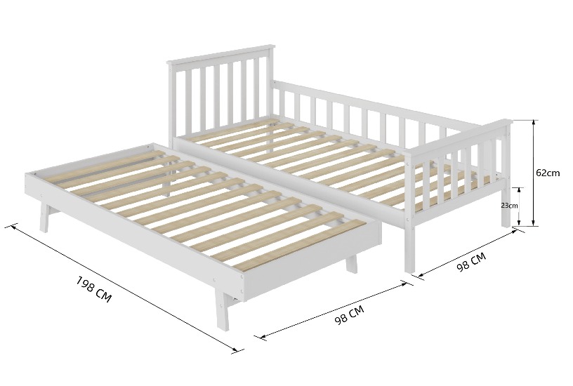 מיטת ילדים מעץ אורן עם מיטת חבר נגררת דגם אליס בצבע לבן – TWINS DESIGN