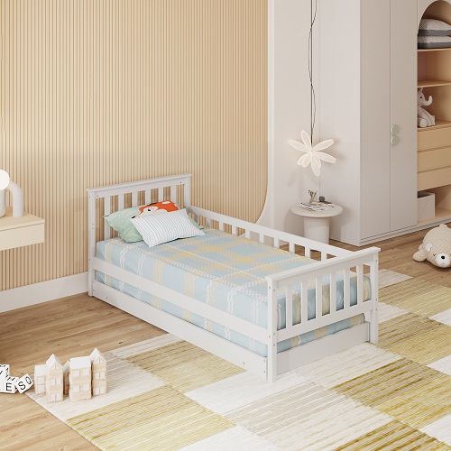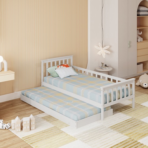 מיטת ילדים מעוצבת ונוחה עם מיטת חבר נגררת, פתרון מושלם לחדרי ילדים המשלב איכות, פרקטיות ועיצוב נקי.
