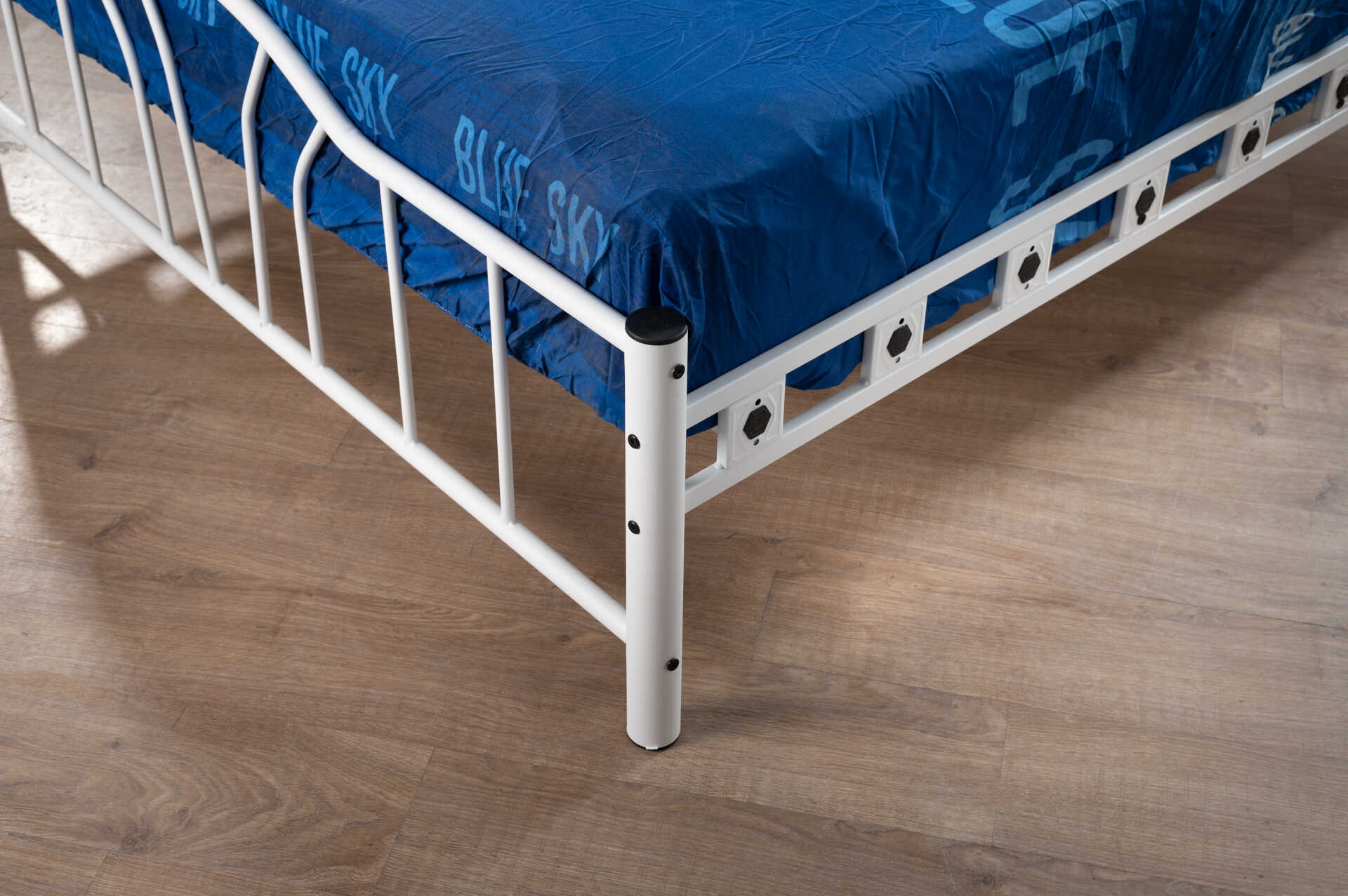 עשויה ממתכת עמידה בצביעה אפוקסית בתנור, עם מסגרת מחוזקת על ידי מוטות מתכת מיוחדים, להבטחת יציבות ותמיכה אידיאלית למזרן.