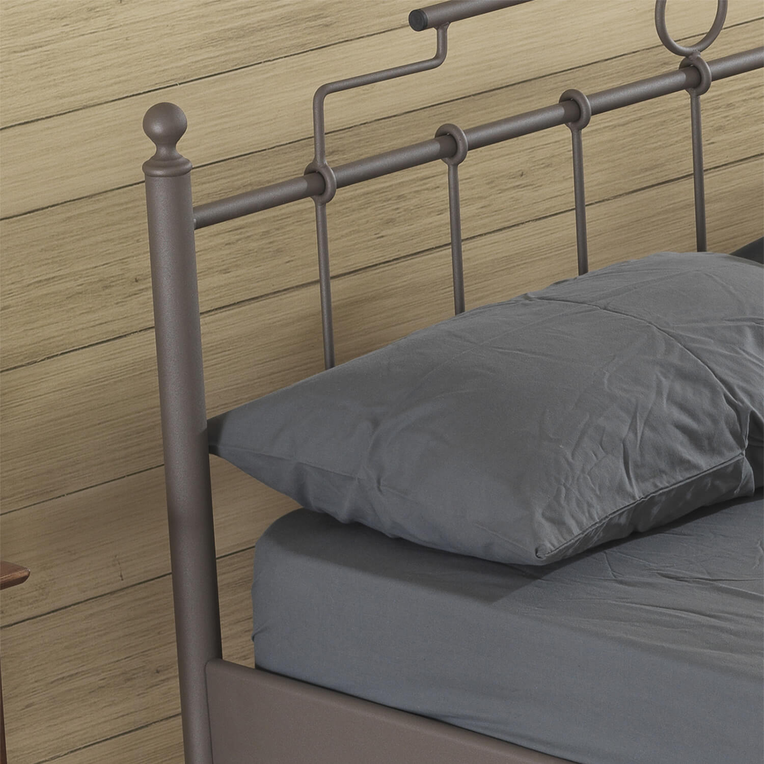 המיטה עשוייה ממתכת במרקם ייחודי, מסגרת המיטה מחוזקת על ידי מוטות מתכת מיוחדים המבטיחים יציבות