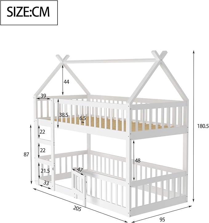 המיטה התחתונה בגובה נמוך במיוחד, כוללת מעקה בטיחות מובנה, מה שהופך אותה למושלמת לילדים צעירים שמתחילים לישון במיטה משלהם. הגובה הנמוך מעניק להם תחושת עצמאות וביטחון, כשהם יכולים לעלות ולרדת לבד – בלי לחשוש ובלי סיכון.