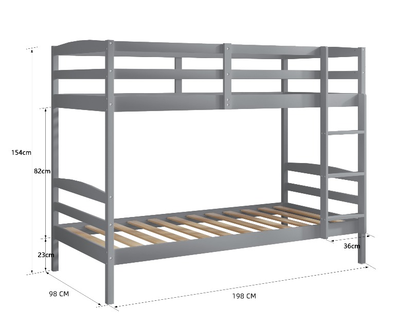 מיטת קומותיים דגם ארין – אפור | כוללת מזרנים | Twins Design