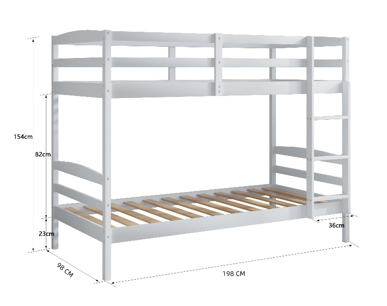 מיטת קומותיים דגם ארין כולל מזרנים – צבע לבן | TWINS DESIGN