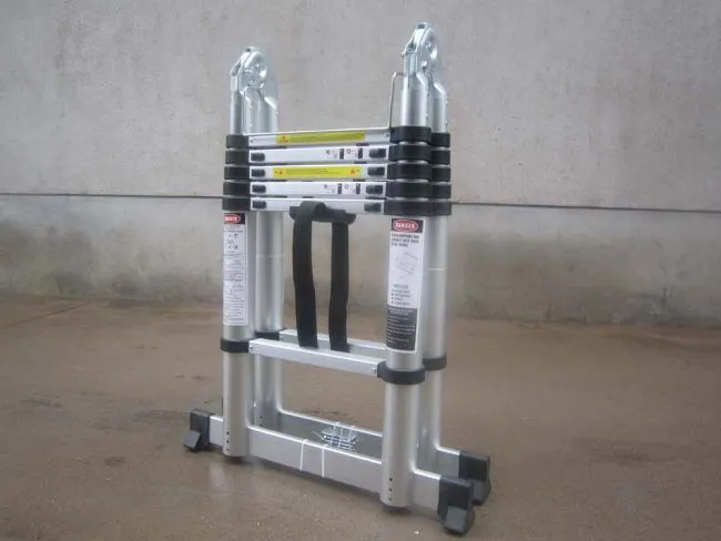 סולם אלומיניום טלסקופי מתקפל כפול, נפתח לגובה 2.2 מטרים