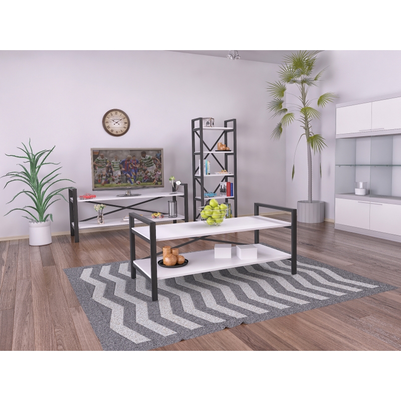 סט הכולל מזנון, ספריה ושולחן סלון תואמים