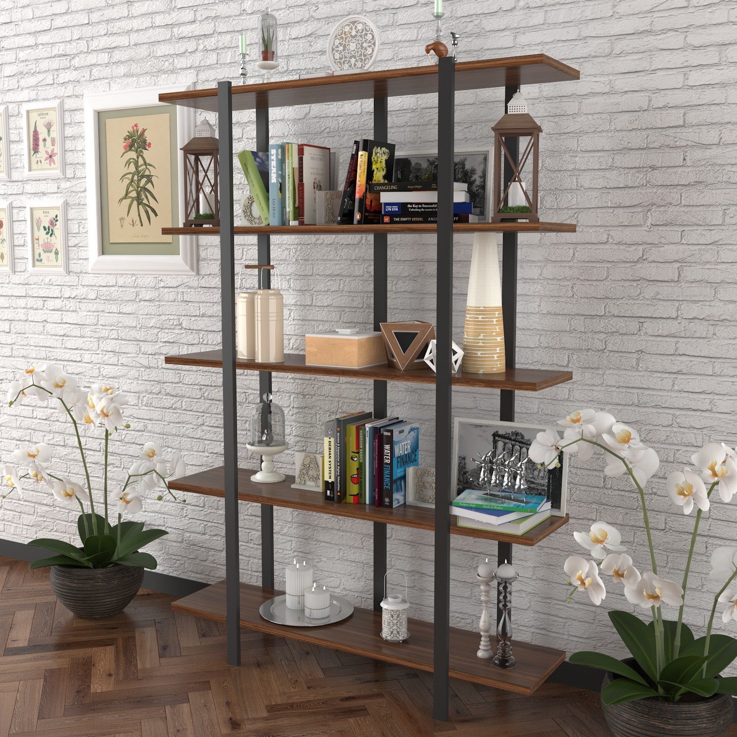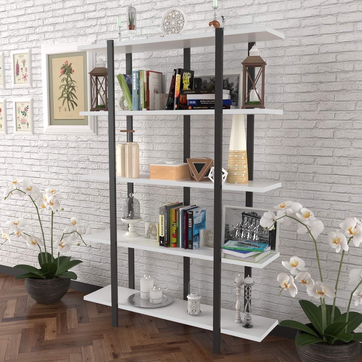 מדפים עבים, חזקים ויציבם המתאימים לספרים ולמוצרי נוי.