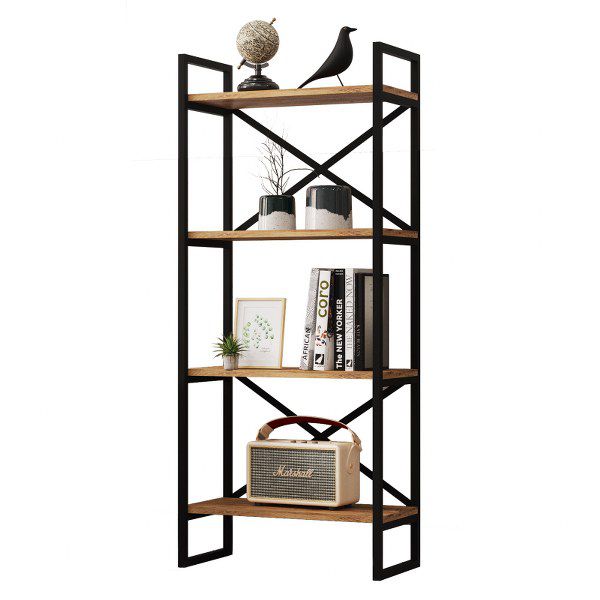 הספריה עשויה מתכת בצבע שחור בשילוב עץ