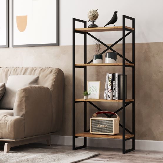 ספריה קלאסית בעלת ארבעה מדפים מעץ_x000D_