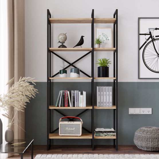 ספרייה קלאסית בעיצוב אלגנטי, בעלת ארבעה מדפים עבים וחזקים מעץ בשילוב מתכת שחורה למראה מודרני-תעשייתי. פתרון אחסון מושלם לספרים, מוצרי נוי ופריטי עיצוב, שמתאים לכל חדר בבית או במשרד ומשתלב בצורה טבעית ונעימה.