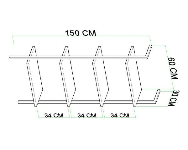מידות הכוננית גובה: 150 ס”מ, רוחב:60 ס”מ, עומק:30 ס”מ רווח בין מדפים 29 ס”מ מסייעות לה להתאים עצמה לכל רום סטיילינג
