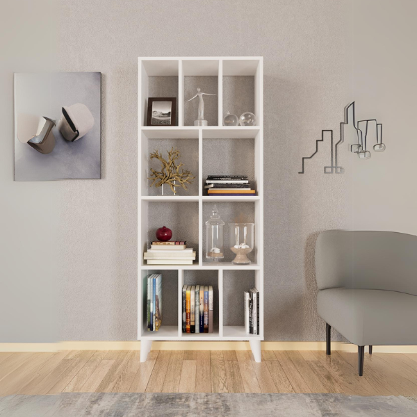 ספריית המדפים דגם ליזה מבית Twins Design מציעה עיצוב מודרני בגימור לבן נקי.