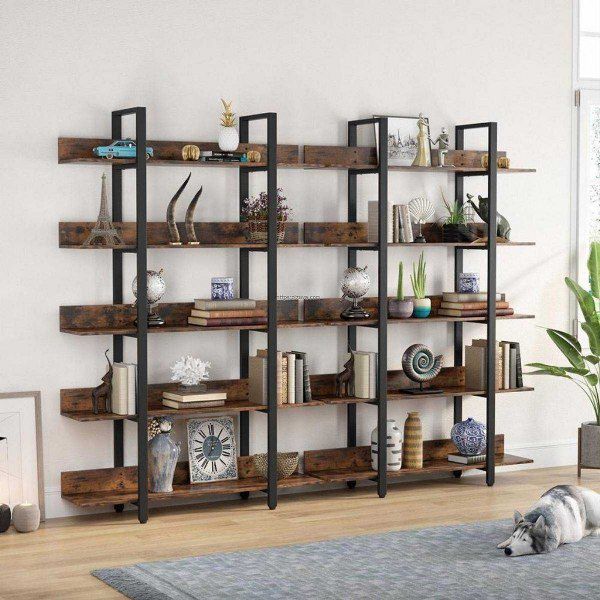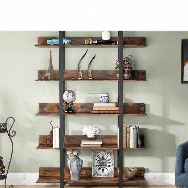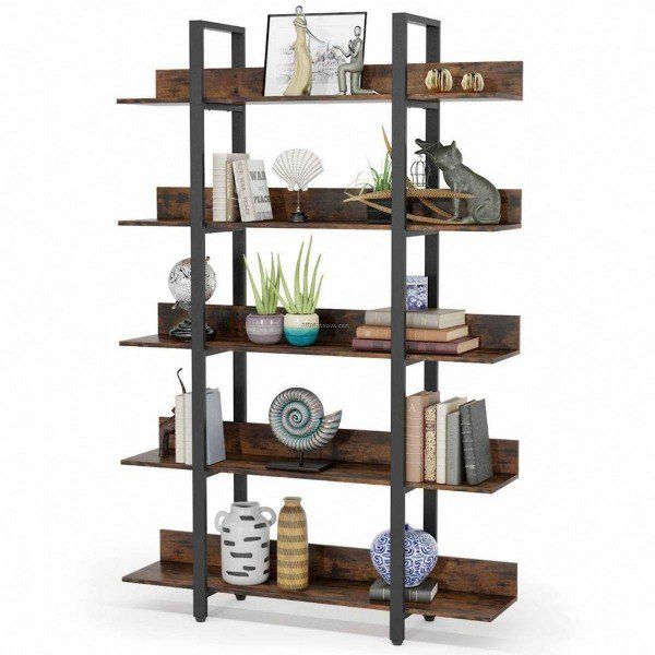 ספריה מתכת חזקה ויציבה בשילוב עץ לעיצוב חלל הבית