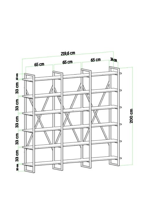 ספרייה רחבה ומרשימה ברוחב 220 ס”מ, המספקת פתרון אחסון מעוצב לבית ולמשרד.