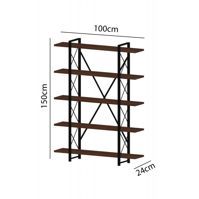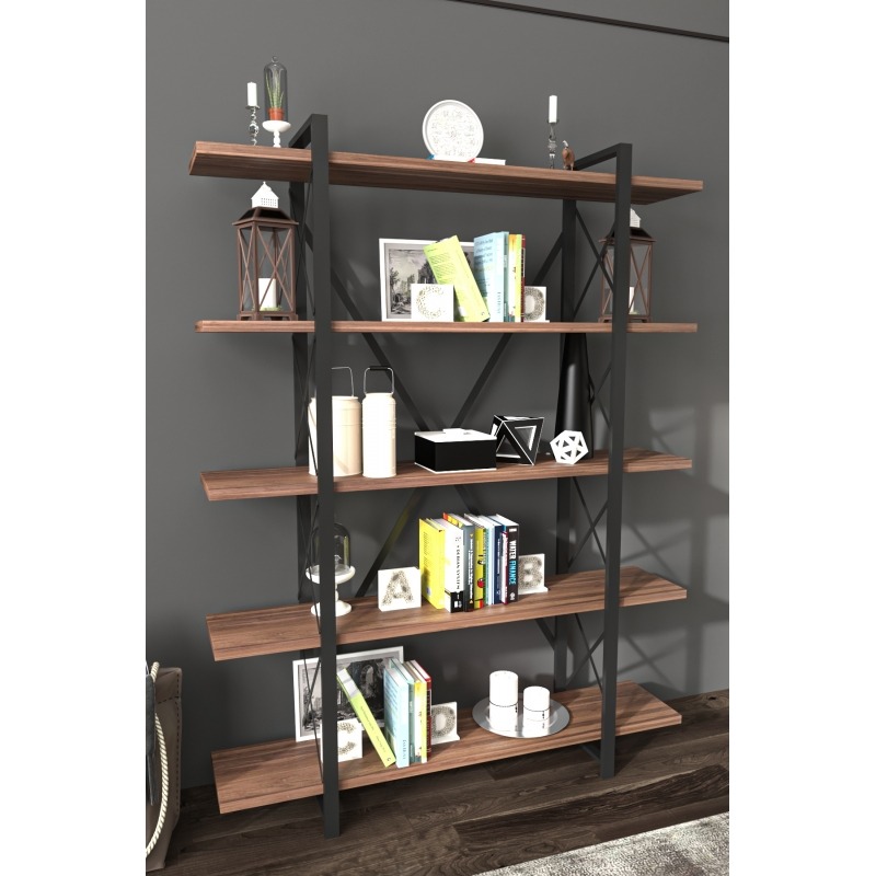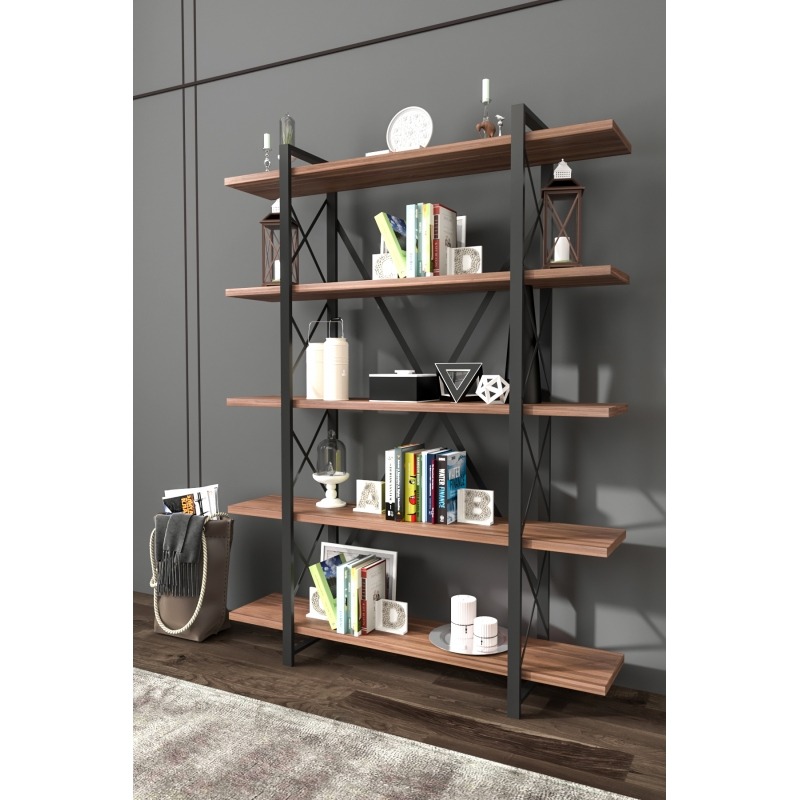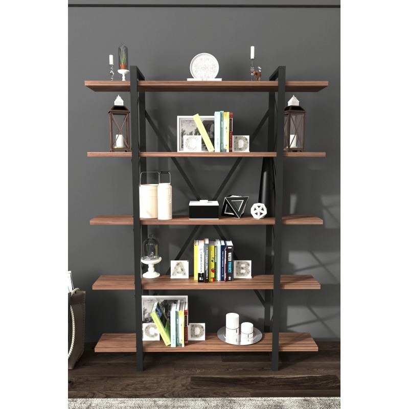 ספרייה קלאסית בעלת 5 מדפי עץ רחבים במיוחד לאחסון ספרים וחפצי נוי