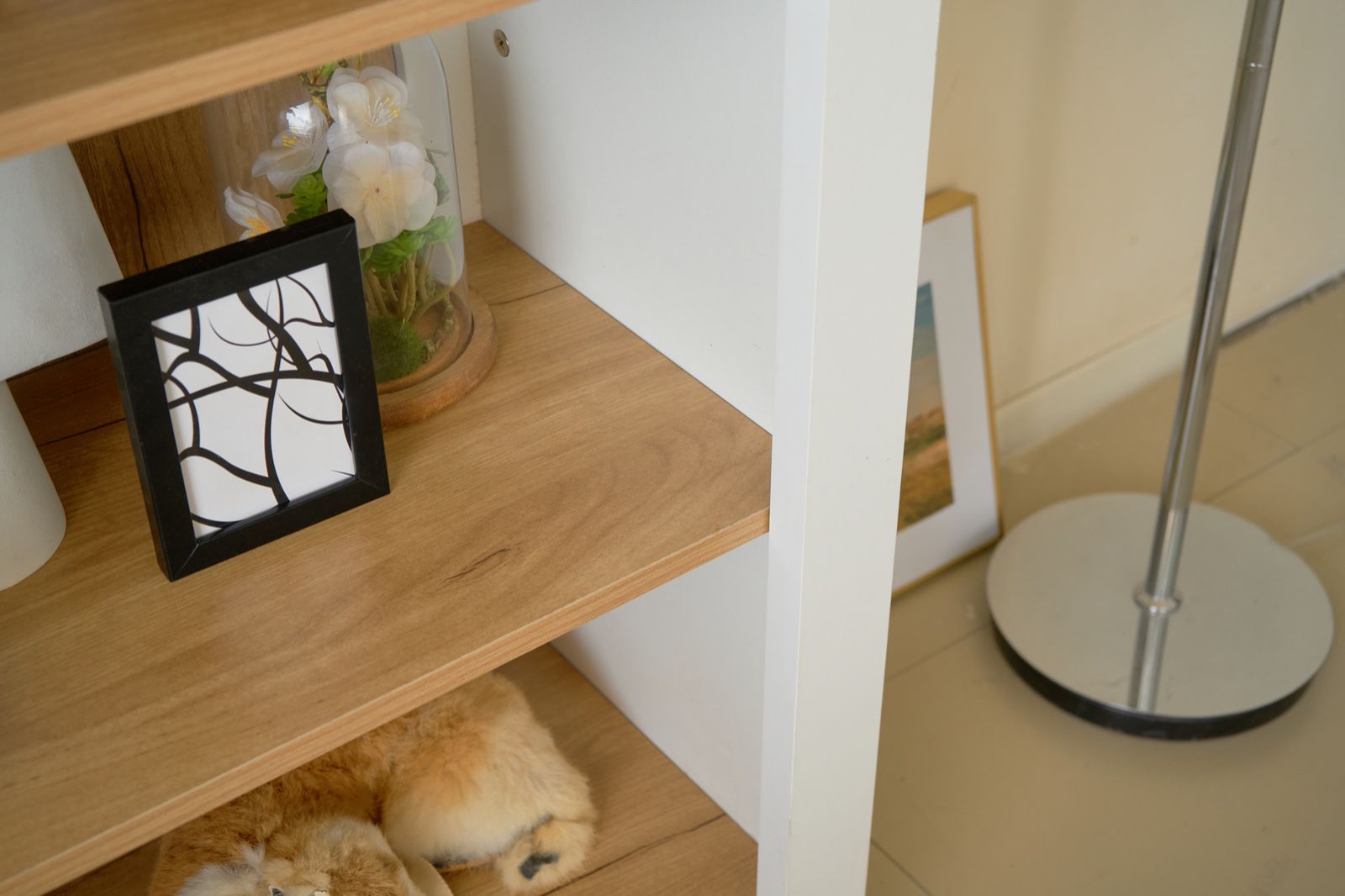 הספרייה כוללת 5 מדפים פתוחים ורחבים, המתאימים לאחסון של ספרים, עציצים קטנים, פריטי נוי, אלבומים משפחתיים או חפצי עיצוב אחרים. בזכות המבנה הפתוח, הפריטים מוצגים בצורה אסתטית ונגישה, והיא מתאימה במיוחד לסלון, משרד ביתי או חדר שינה.