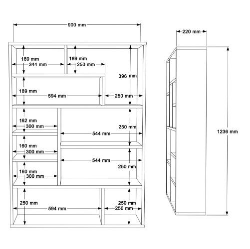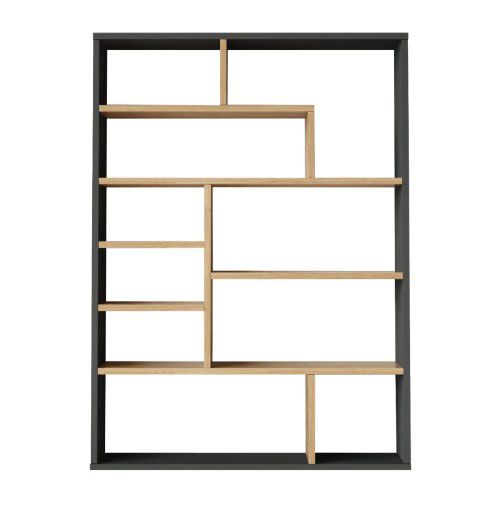עשויה סיבית בציפוי מלמין, עם חלוקה חכמה של מדפים בגבהים שונים לאחסון ספרים ופריטי נוי.
