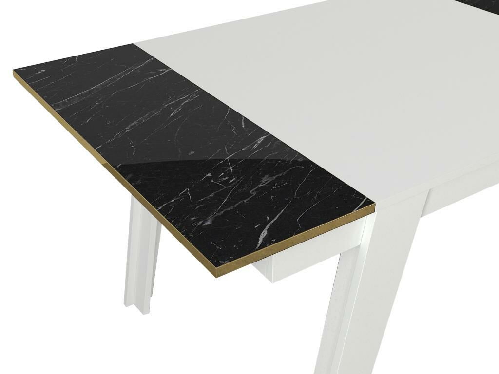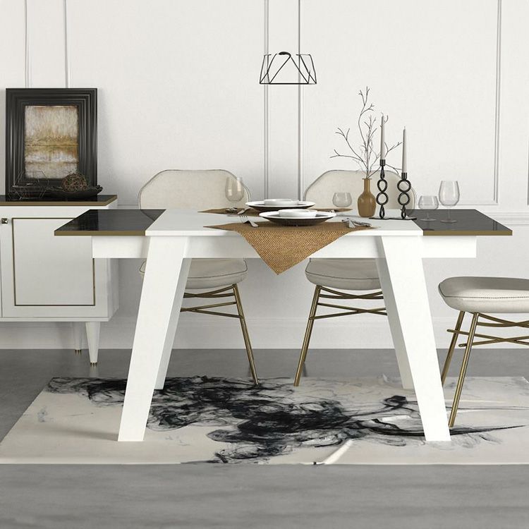 פינת אוכל מלבנית בצבע שחור שיש עם שילוב לבן יכולה להיות תוספת מרהיבה לחלל המטבח והאוכל.