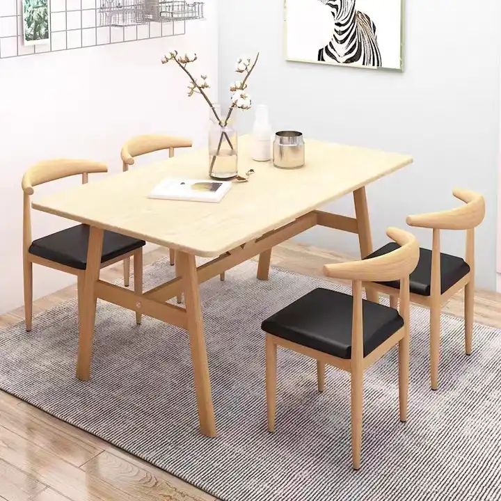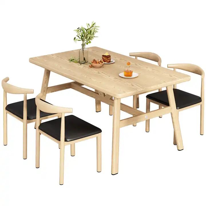 בצבע טבעי, והכסאות עשויום מתכת בצבע טבעי בשילוב שחור, המעניק להן מראה נקי ומודרני.