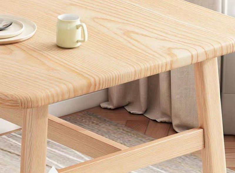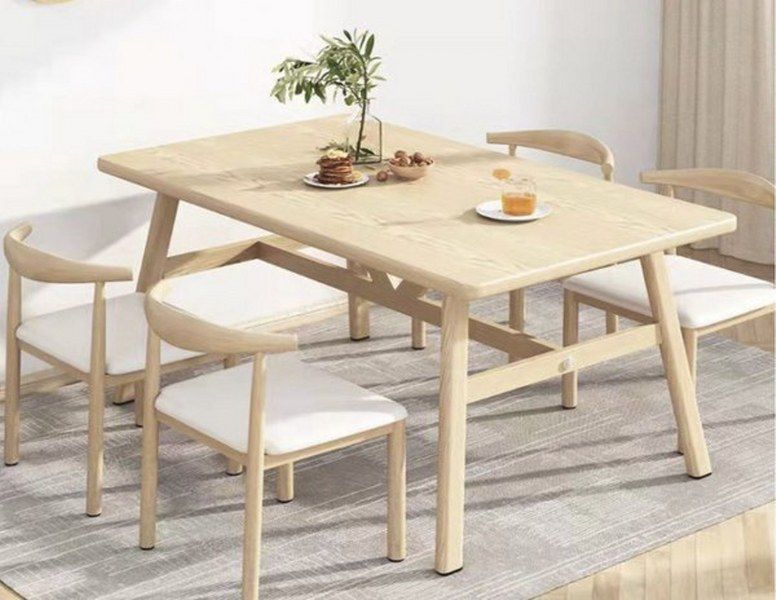 בצבע טבעי, והכסאות עשויום מתכת בצבע טבעי בשילוב לבן, המעניק להן מראה נקי ומודרני.