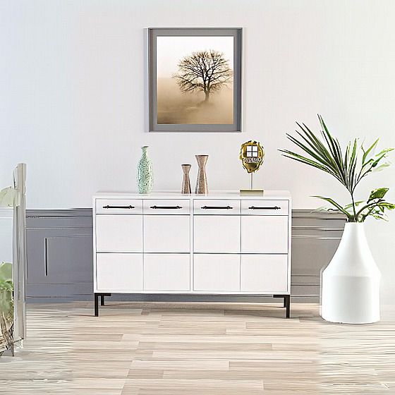 קונסולה מפוארת בעיצוב אלגנטי המשלבת בין צבעים לבן ושחור.