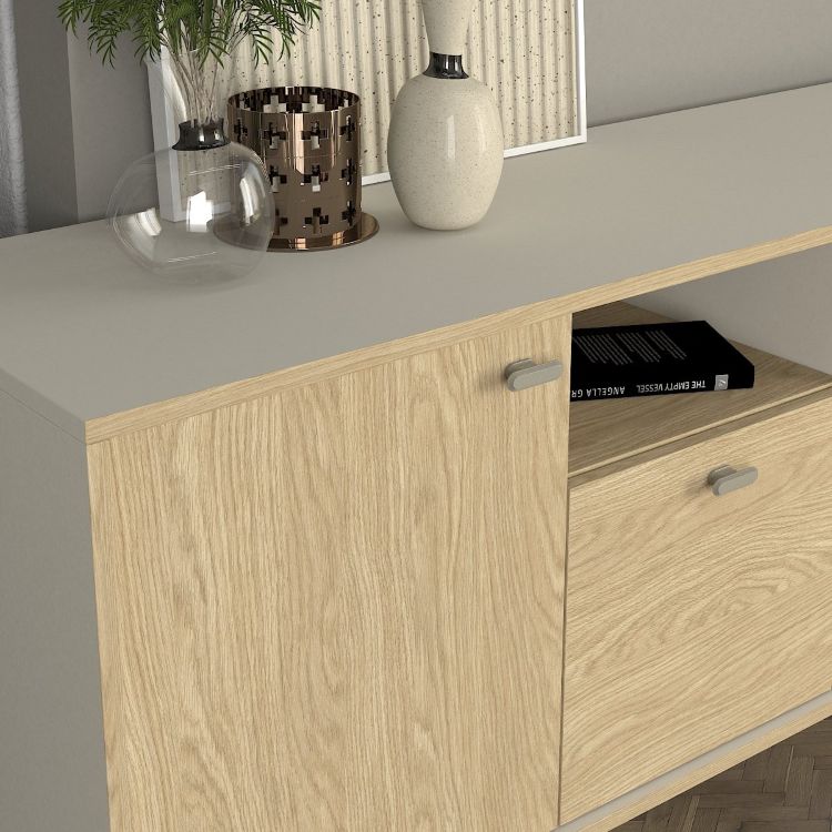 חלקי הקונסולה השונים מתחברים בהרמוניה ליחידה שלמה וסימטרית. הידיות העדינות משתלבות היטב עם העיצוב הכללי ומוסיפות טאץ’ מודרני._x000D_