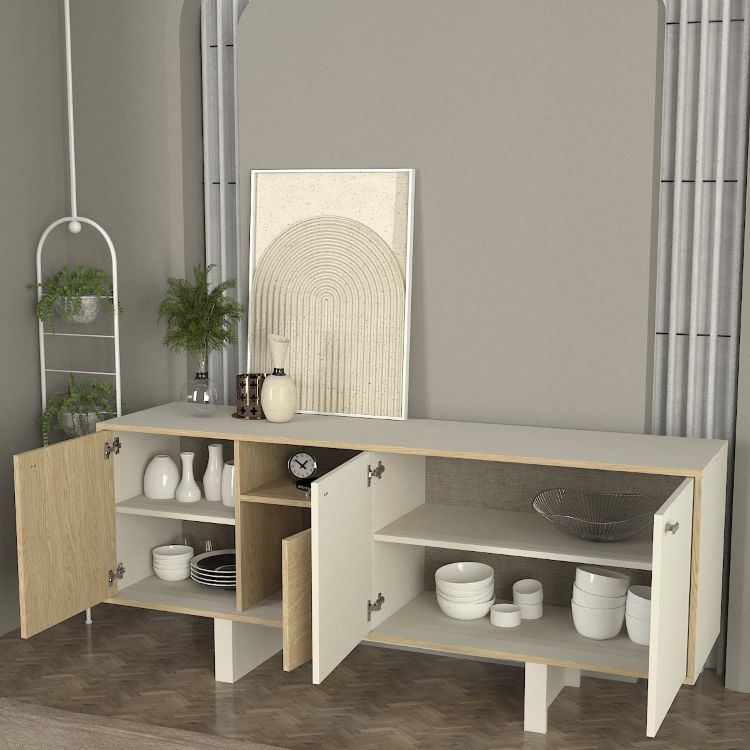 עיצוב סקנדינבי – מודרני: שילוב צבעי הבז’-לבן עם גימור עץ אלון בהיר יוצר מראה מרגיע ואלגנטי, שמתאים למגוון רחב של סגנונות עיצוביים._x000D_