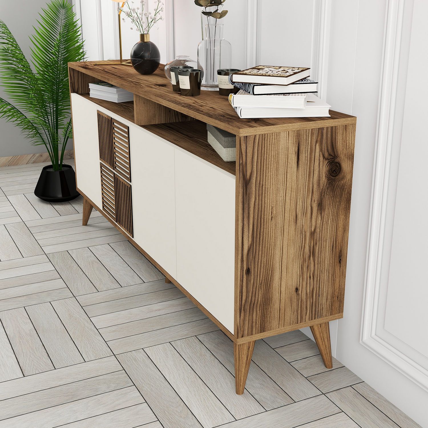 קונסולה מפוארת – שילוב שמנת ואגוז