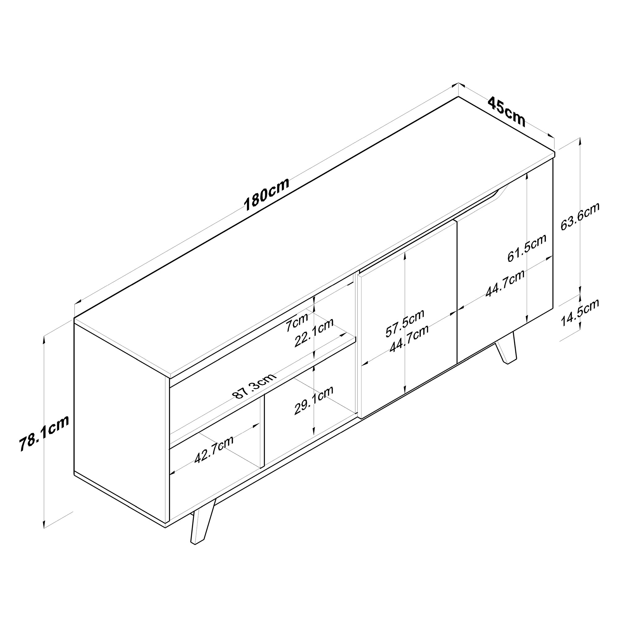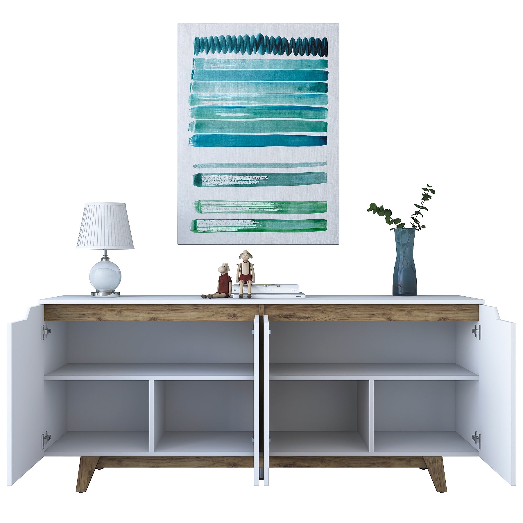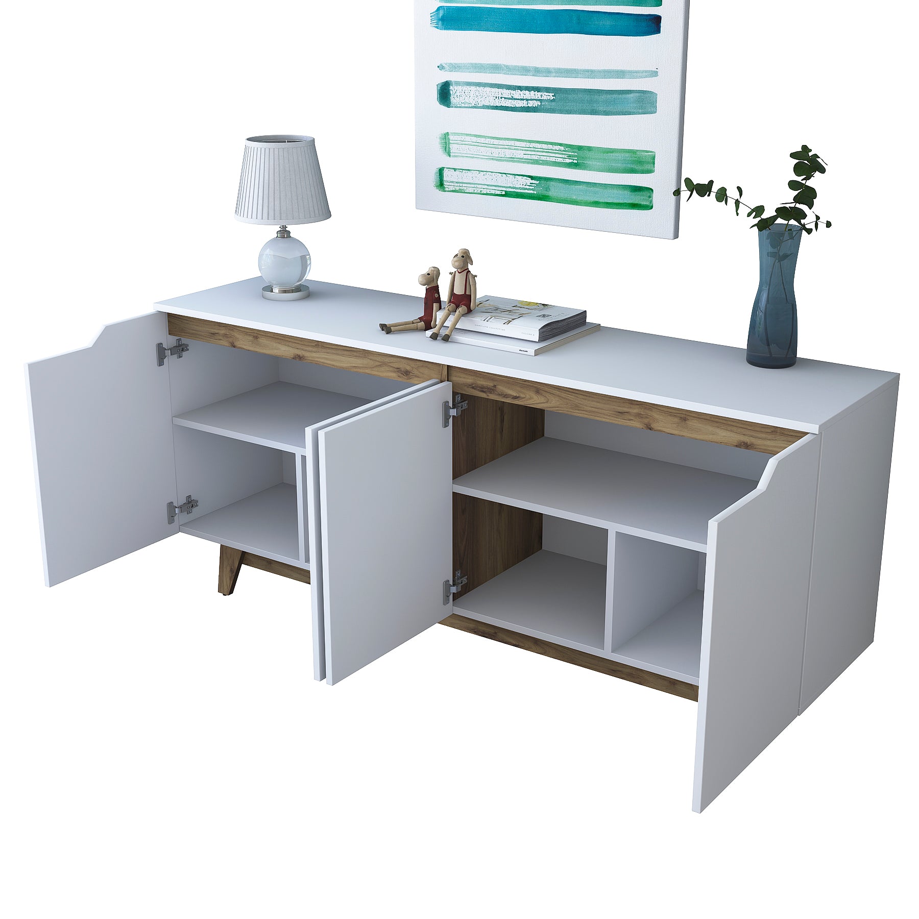 לקונסולה יש 4 דלתות ומדפים פנימים לאיחסון מירבי