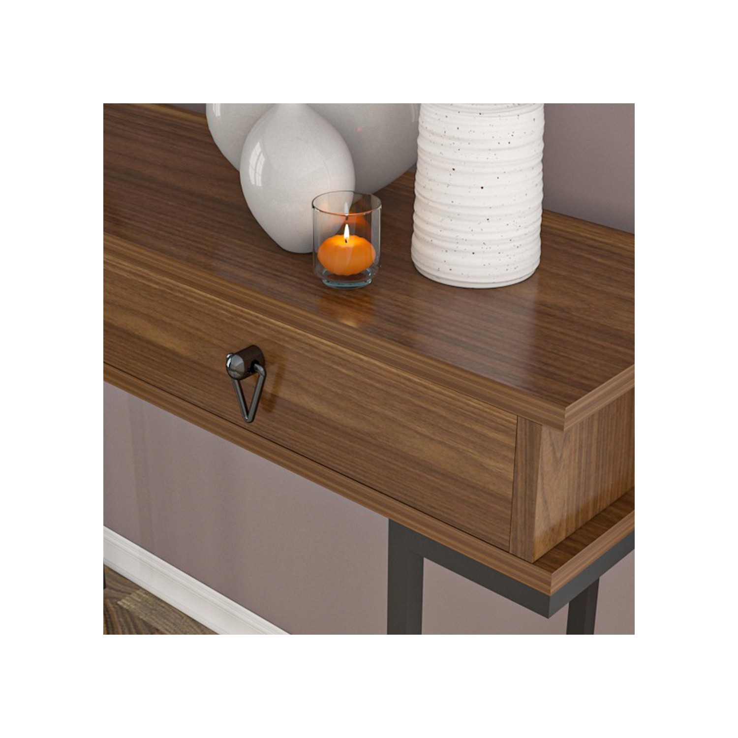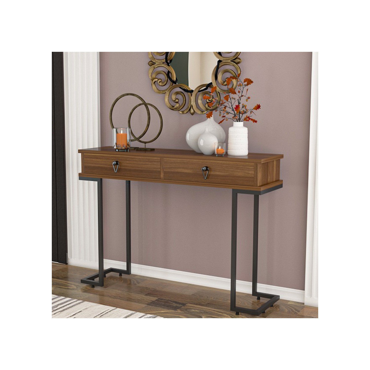 שידת כניסה בעיצוב מעודן עם רגלי סיכה עשויות מתכת עמידה במיוחד ומדף עשוי עץ איכותי בעל שתי מגירות לאחסון מיטבי