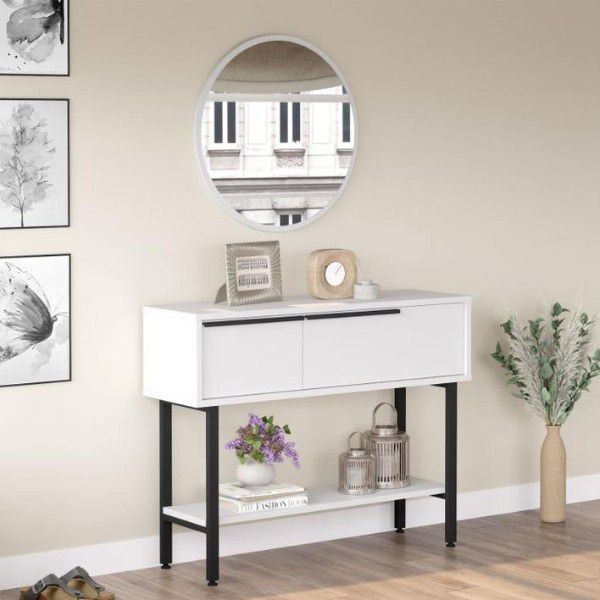 שידת כניסה אלגנטית בעיצוב מודרני עם רגלי מתכת חזקות, אידיאלית להוספת סטייל ופתרון אחסון פרקטי לחלל הבית.