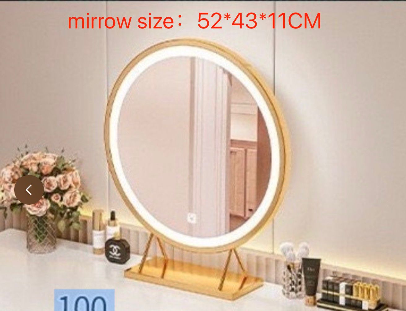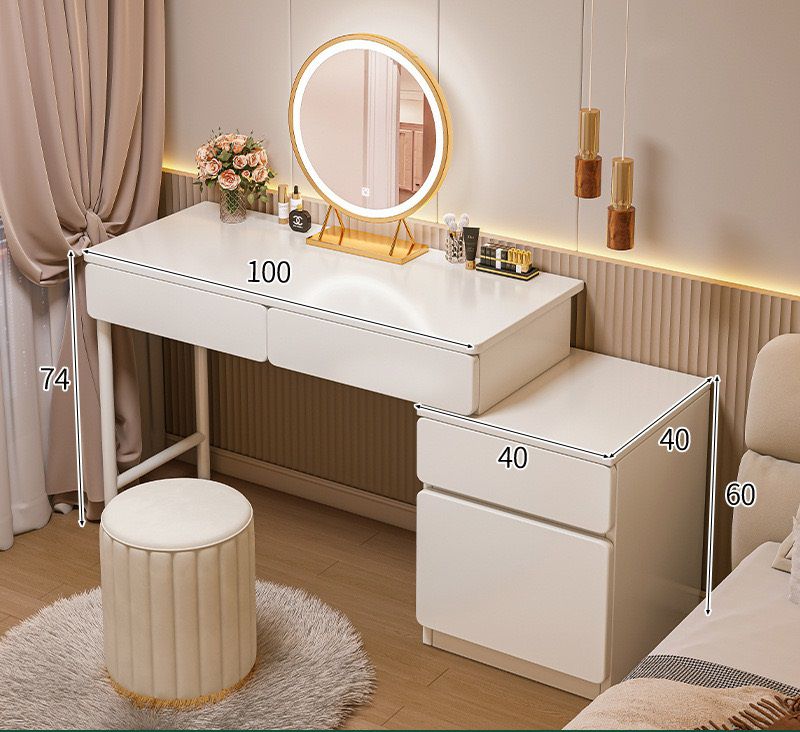 שידת איפור מודרנית ואלגנטית, המשלבת מראה עגלגלה עם תאורת לד. השידה בעלת מידות של 100 ס”מ ברוחב, 40 ס”מ בעומק ו-74 ס”מ בגובה. השידה מצוידת במגירה לאחסון אביזרי האיפור בנוסף קומודה עם מגירה ודלת פתיחה מידות הקומודה רוחב 40 ס”מ עומק 40 ס”מ וגובה 60 ס”מ