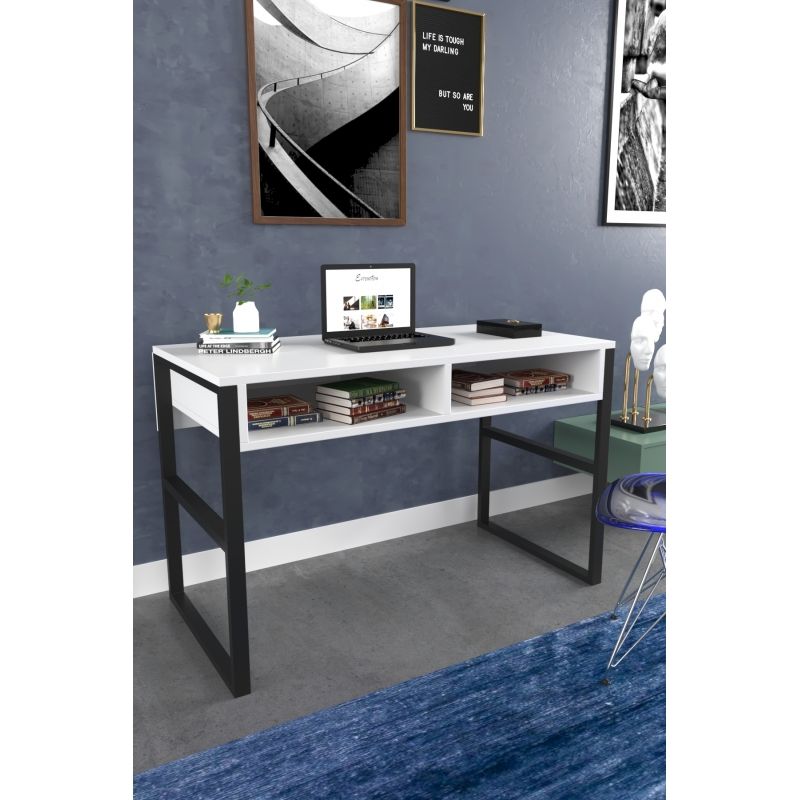 שולחן מחשב מעוצב ויוקרתי למשרד או לבית, מגיע עם שתי תאים לאחסון חפצים ולנוחות מקסימאלית.