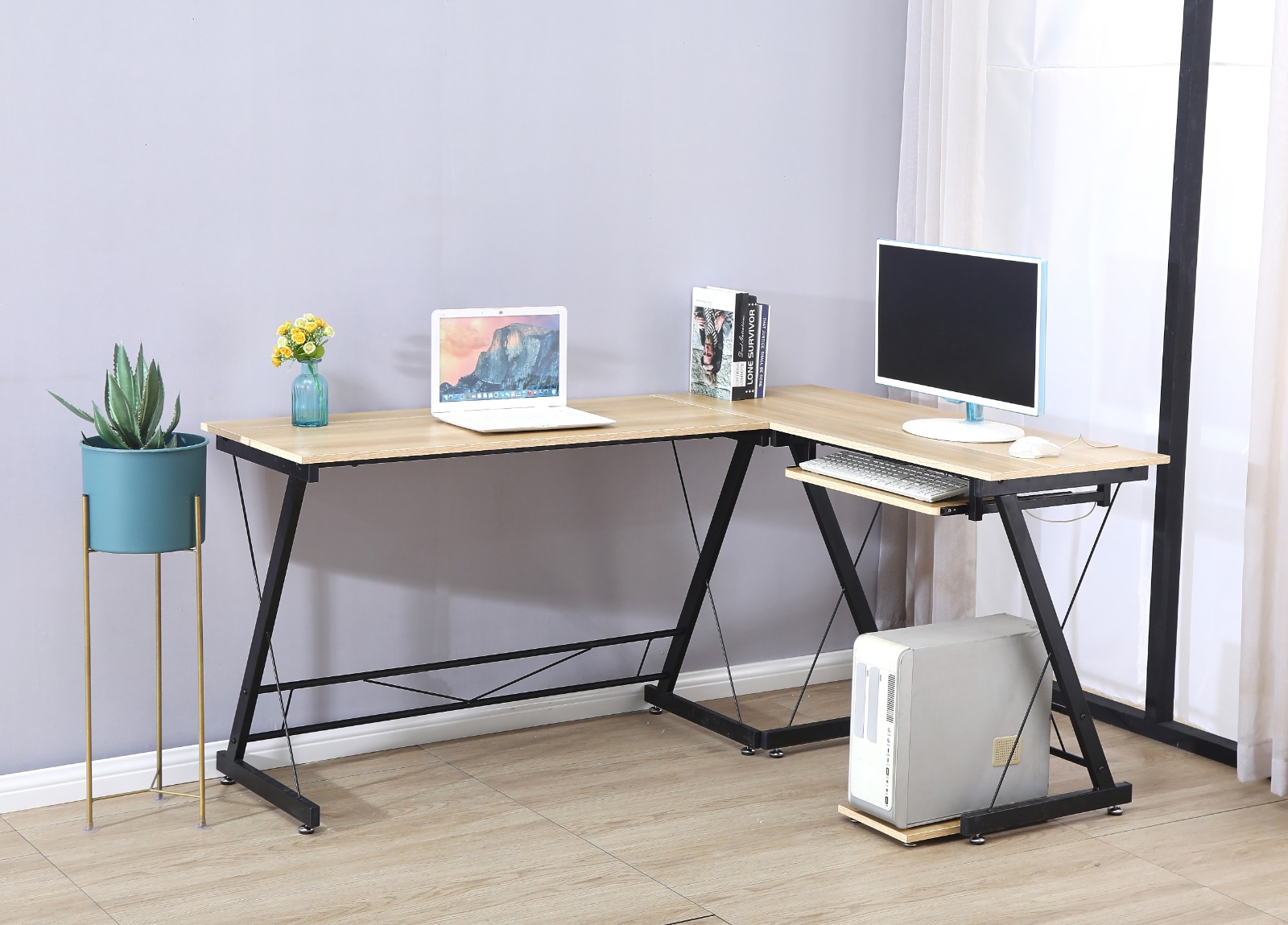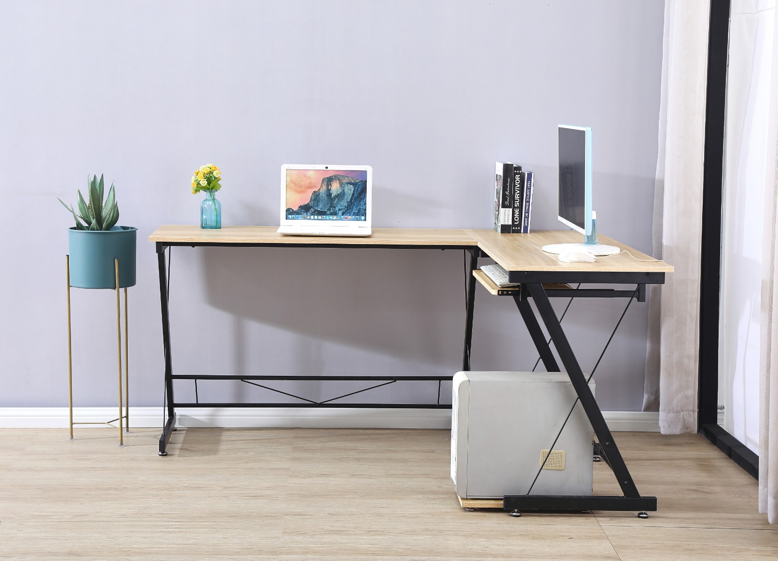 שולחן מחשב פינתי מעוצב בעיצוב מודרני וחדשני על טהרת המינימליסטיות.