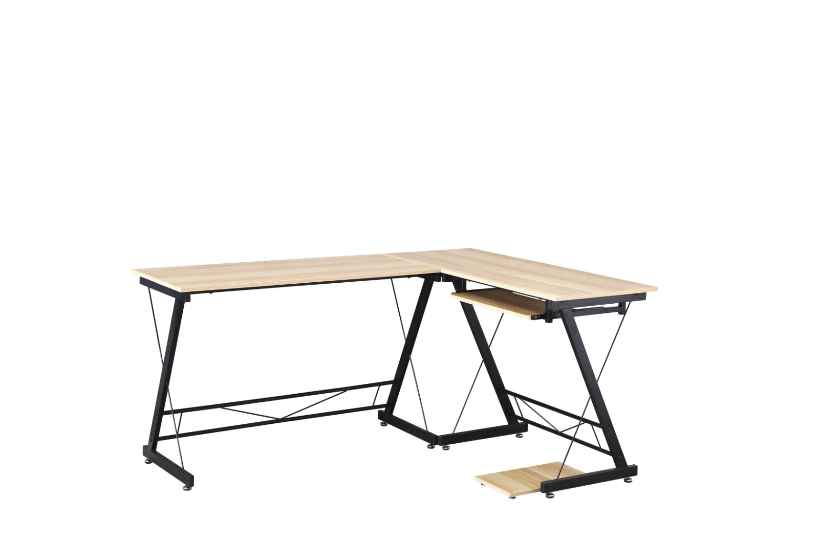 עיצוב השולחן מאפשר שילוב עבודה עם מחשב נייח או מחשב נייד ומגיע עם מדף נשלף למקלדת