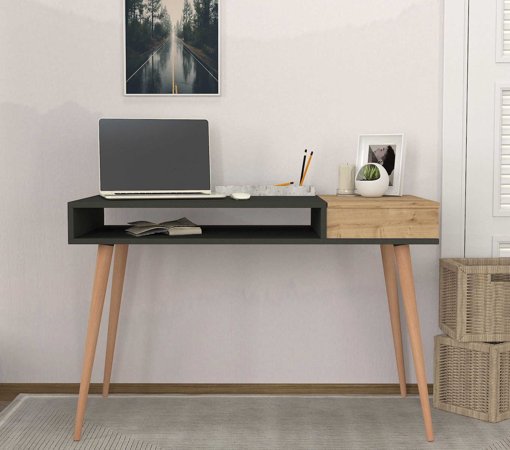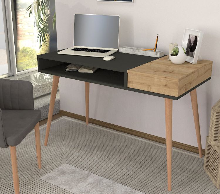 שולחן המחשב דגם אטרופס מבית Twins Design הוא שולחן יוקרתי ועשוי מעץ בשילוב צבע שחור, שמביא עמו עיצוב מודרני ומרשים. השולחן מגיע עם 2 תאי אחסון – אחד נפתח ואחד פתוח – שמספקים פתרון אחסון פרקטי ונגיש לכל החפצים האישיים והחפצים הנחוצים לשימוש יומיומי. הרגליים החזקות והיציבות מבטיחות נוחות מקסימלית ושימוש ארוך טווח.