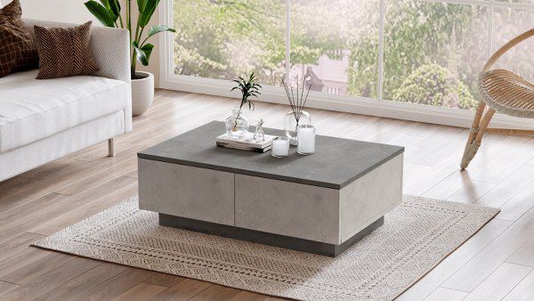 שולחן סלון מודרני ופרקטי, בגוון אפור בהיר משולב אפור בטון, שמשתלב באופן מושלם בכל חלל מגורים.