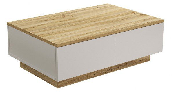 שולחן סלון מעוצב בצבע לבן בשילוב עץ בהיר