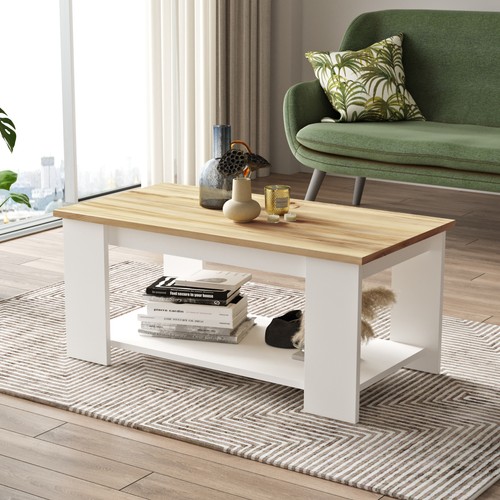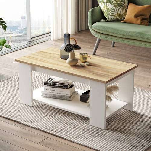 שולחן הסלון האידיאלי לעיצוב הבית בגוון לבן משולב עץ בהיר