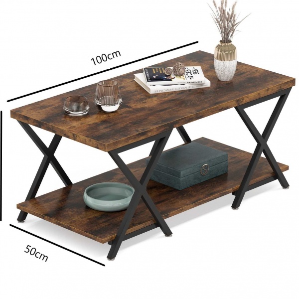 שולחן דו משטחי ייחודי דגם ליבר מבית Twins Design בצבע עץ, עם רגליים מתכת בצבע שחור המתחברות יחד לשני בסיסי השולחן. שולחן מהמם ומתאים לכל סלון, נוח ושימושי, כולל מדף תחתון לעיתונים, ספרים, אלבומים ועוד. עשוי מסיבית בציפוי מלמין דמוי עץ טבעי, מדהים, איכותי ועמיד לשנים רבות. רגלי השולחן השחורות בעלות עיצוב ייחודי בצורת X ועשויות ממתכת חזקה ועמידה בצבע שחור.