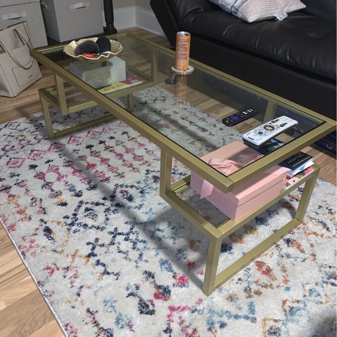 השולחן עשוי רגליים מתכת בשילוב פלטה זכוכית