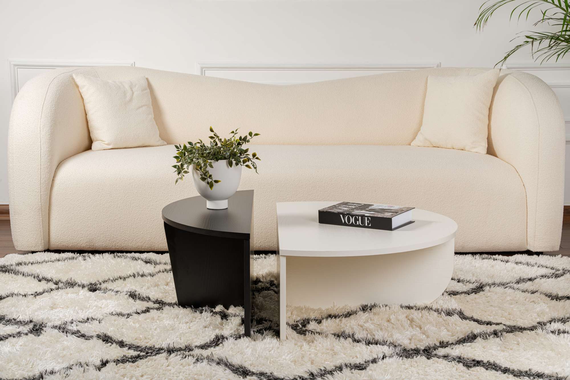 שולחן סלון מעוצב בצבע לבן עם שחור – שילוב מושלם של אלגנטיות מודרנית ונוחות שימוש.