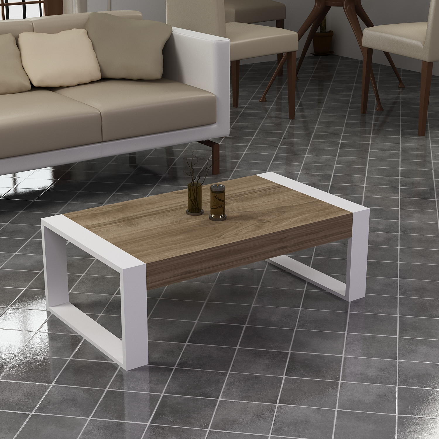 עץ כהה-WALNUT עם רגליים לבנות
