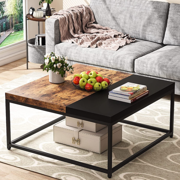 שולחן סלון מעוצב בצבע עץ אורן בשילוב שחור